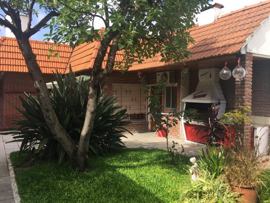 La primera: CHALET al frente. Cuenta con Jardín de ingreso, garage, Amplio Living comedor con piso de madera tarugado, hall distribuidor que comunica a 1 dormitorio al frente, baño completo con bañera, 2do dormitorio con placard embutido, 3 er Dormitorio principal en suit con vestidor. Cocina comedor totalmente equipada con muebles alto y bajo mesada de madera lustarada, horno empotrado y anafe todo acero inoxidable. Aire acondicionado y Calefacción por estufas tiro balanceado. Salida a patio tipo galeria con jardin. Parrilla, Lavadero con toilette, y terraza.