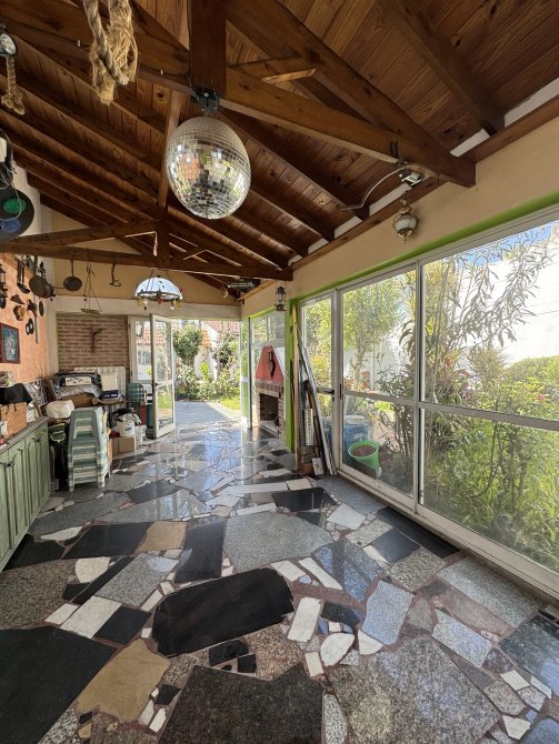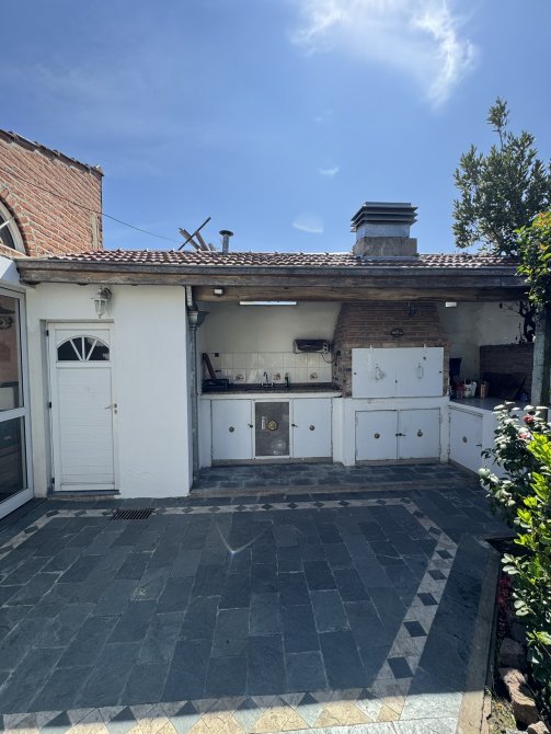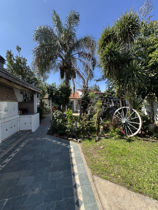 Con gran jardín con árboles y frutales, garage cubierto/quincho con hogar a leña, parrilla y toilette